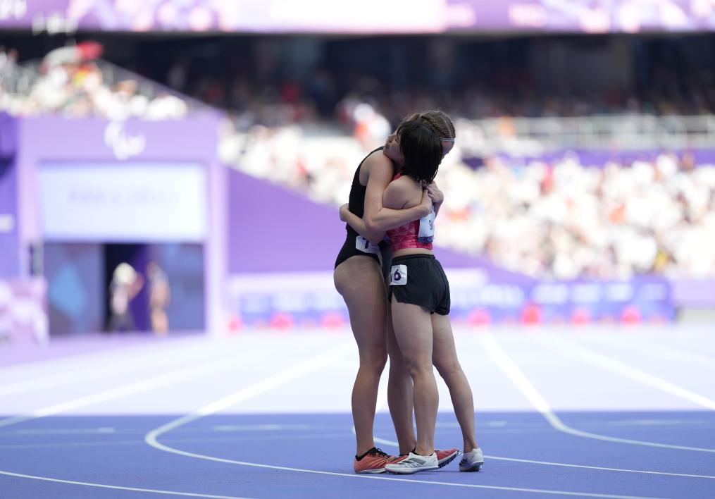 這是1日巴黎殘奧會女子200米T36級決賽中的一幕。中國選手史逸婷以27秒50的成績力壓該項目世界紀錄保持者、新西蘭選手丹妮爾奪冠,同時打破殘奧會紀錄。撞線后的史逸婷,趴在丹妮爾身上許久直不起身。