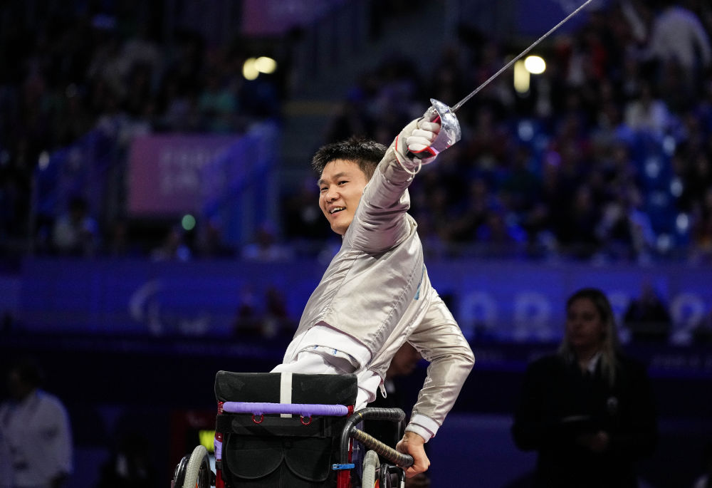 作為本屆奧運會和殘奧會最受好評的場館之一,大皇宮3日迎來輪椅擊劍首個比賽日的爭奪,中國隊當天斬獲2枚金牌。第三次參加殘奧會的男子佩劍B級世錦賽、殘奧會雙料冠軍馮彥可,在該項目個人決賽中和波蘭選手東布羅夫斯基展開激烈較量。比賽尾聲雙方戰(zhàn)至14平,關鍵時刻,馮彥可展現(xiàn)了大心臟,一劍封喉絕殺對手,成功衛(wèi)冕。