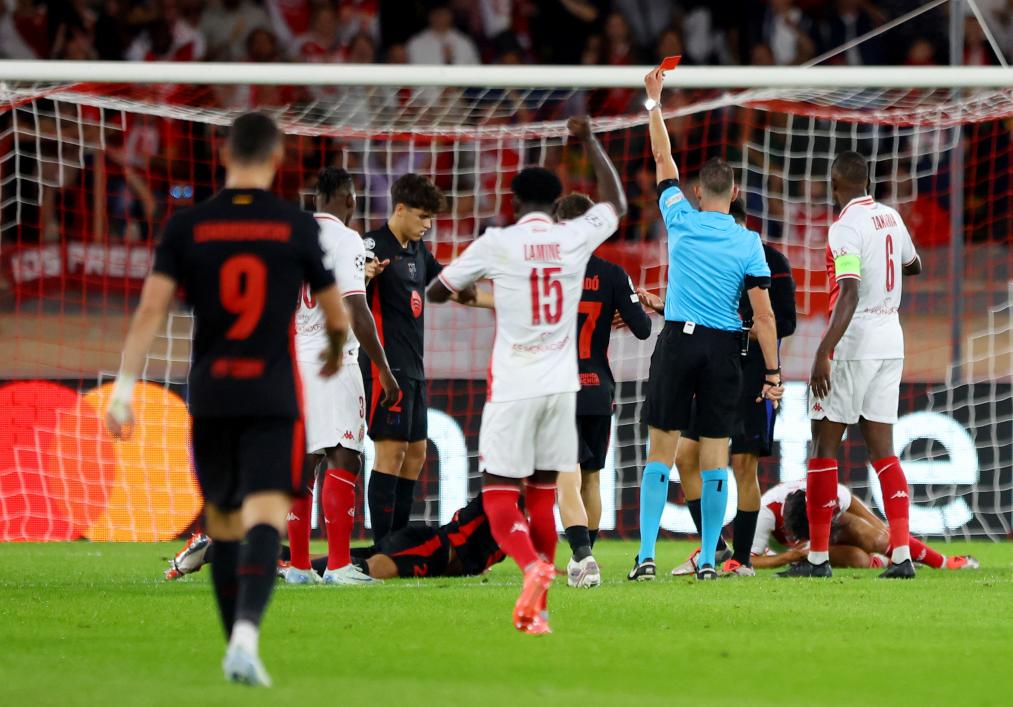 摩納哥主場(chǎng)迎戰(zhàn)巴薩的比賽中,開場(chǎng)第10分鐘,客隊(duì)門將特爾施特根后場(chǎng)出球失誤,埃里克·加西亞不得不在弧頂處犯規(guī),放倒了斷球的南野拓實(shí),主裁判將加西亞紅牌罰下。巴薩不得不以10人應(yīng)戰(zhàn)。