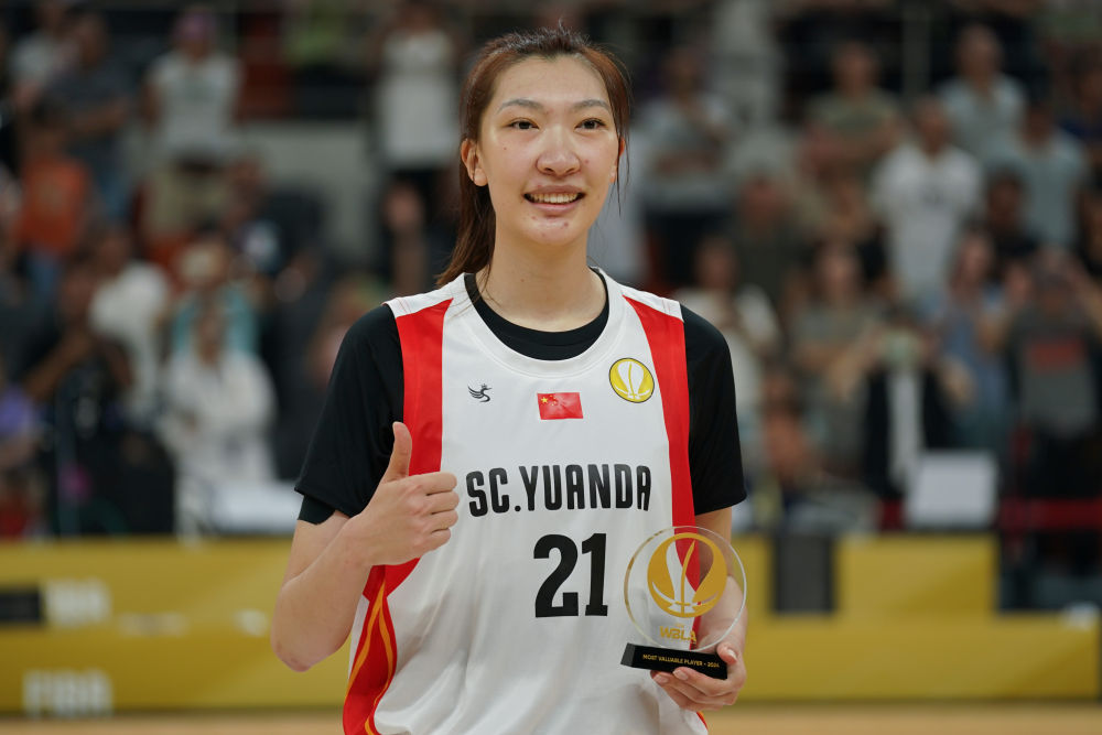 9月28日,中國(guó)四川遠(yuǎn)達(dá)美樂(lè)隊(duì)球員韓旭獲頒“最有價(jià)值球員”獎(jiǎng)。新華社記者 胥冰潔 攝