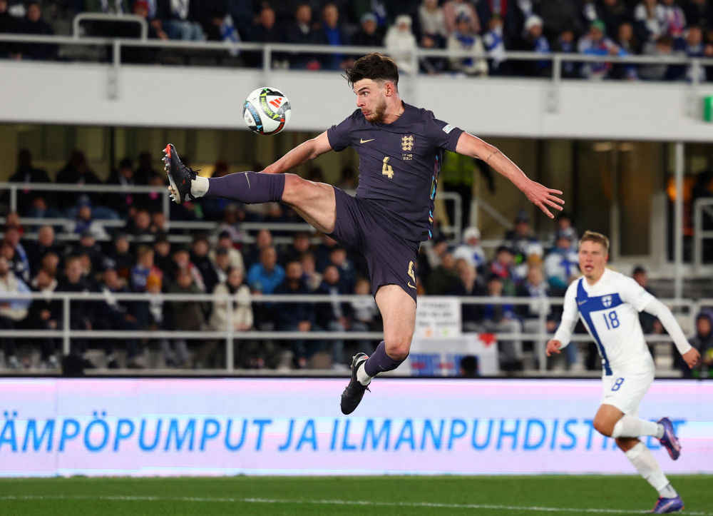 10月13日,英格蘭隊(duì)球員賴斯在比賽中停球。