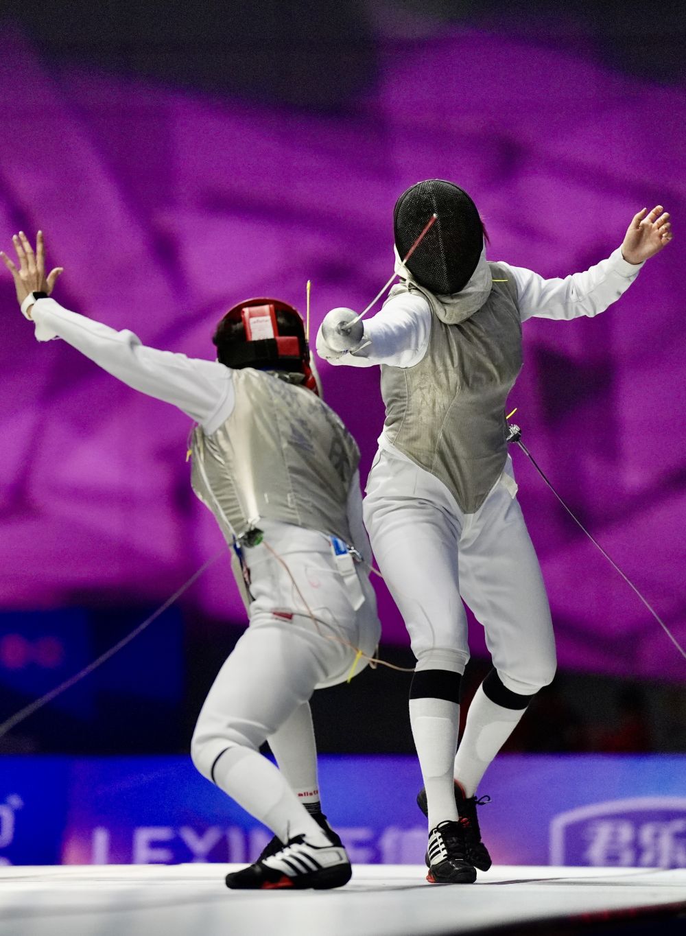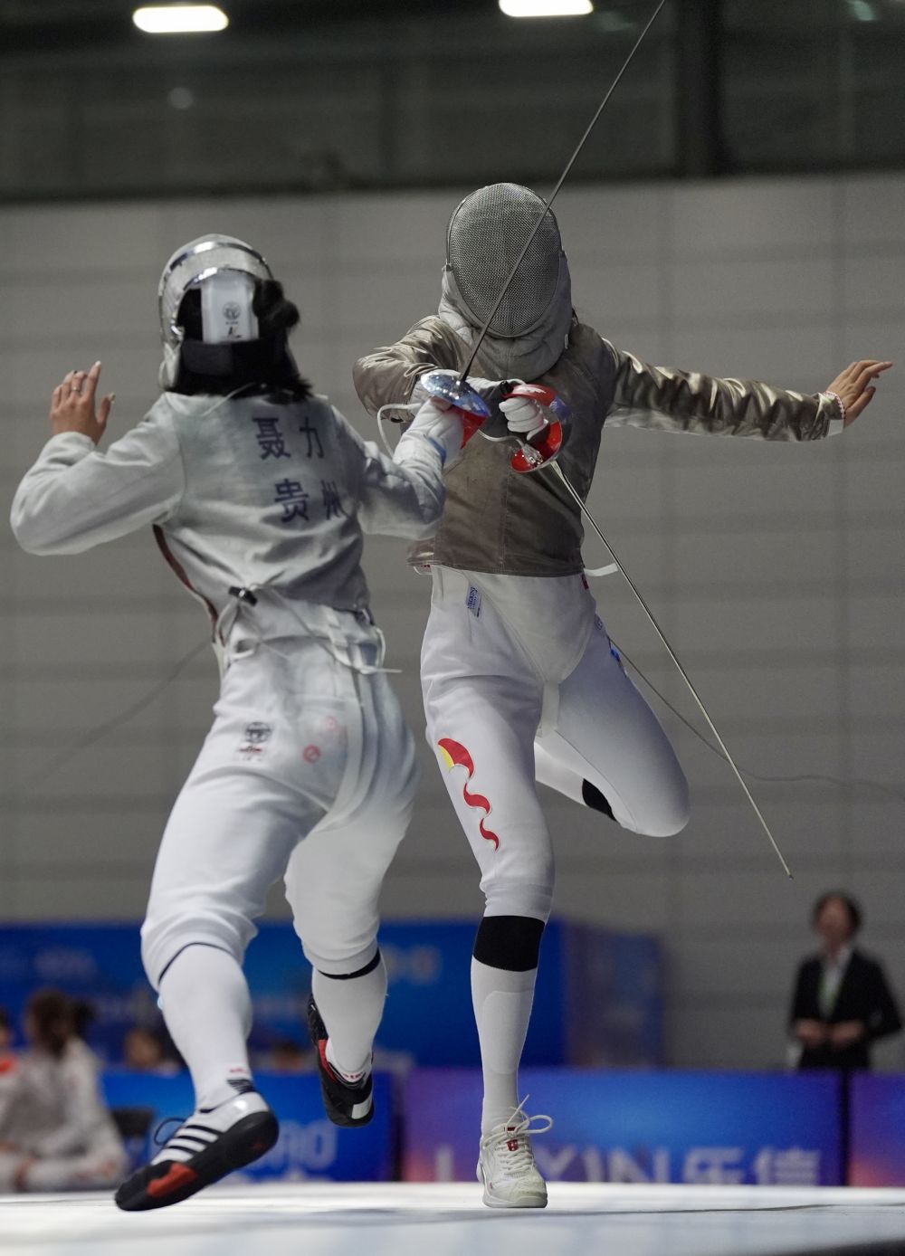 楊恒郁(右)在女佩團(tuán)體決賽中