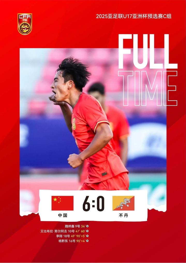 新華社大連10月23日電 23日,在大連進(jìn)行的一場(chǎng)2025亞足聯(lián)U17亞洲杯預(yù)選賽C組第三輪比賽中,中國(guó)隊(duì)6:0大勝不丹隊(duì),迎來(lái)兩連勝。