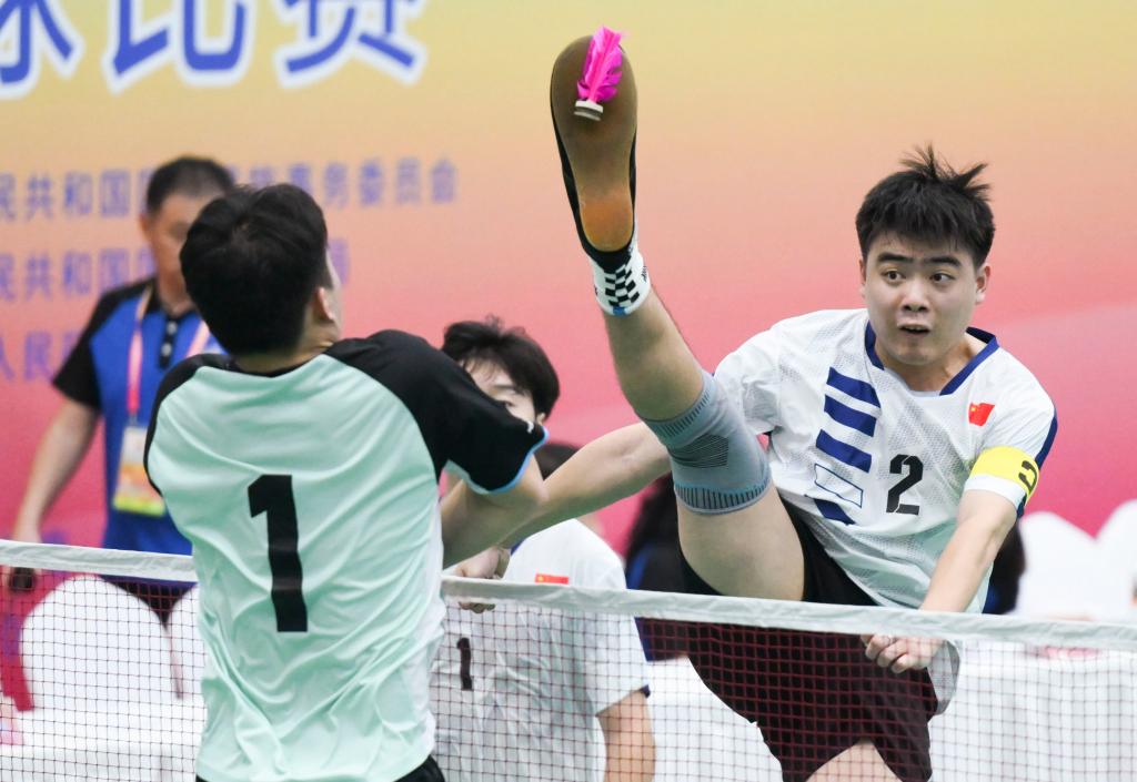 “全國毽球界頂級高手都在這里相遇,我感到壓力很大,但是也學到了很多新技術?!?4歲的貴州隊毽球運動員羅文兵說。