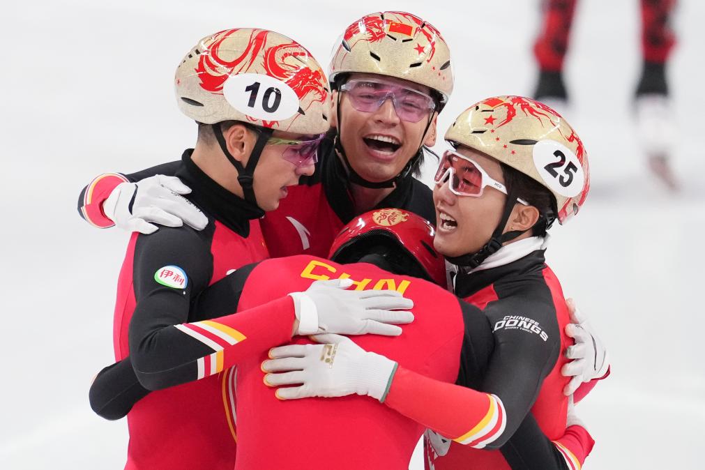 男子5000米接力決賽中,孫龍、李文龍、劉少林、劉少昂代表中國隊(duì)出戰(zhàn)。賽況激烈,多隊(duì)選手先后摔出賽道,最后一棒交接時(shí),場上只剩中國和韓國隊(duì)選手在爭冠之列。中國隊(duì)借交接之機(jī)超越到第一,韓國選手在即將進(jìn)入最后一圈時(shí)也摔倒,中國隊(duì)穩(wěn)穩(wěn)守住優(yōu)勢,以6分42秒551拿下冠軍。