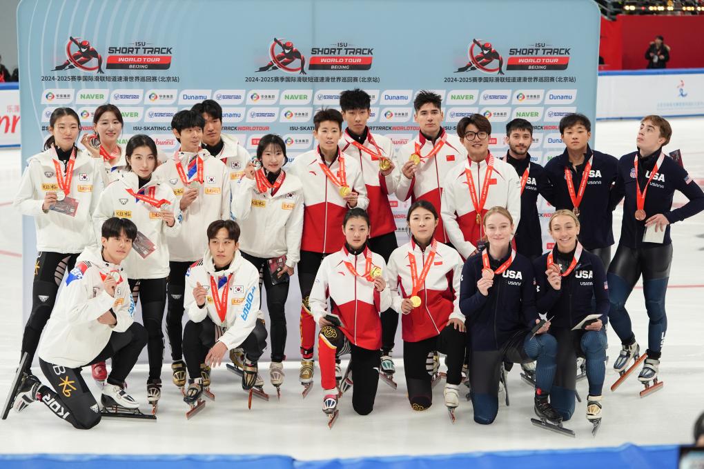 新華社北京12月8日電(記者丁文嫻、曹奕博)2024-2025賽季國際滑聯(lián)短道速滑世界巡回賽北京站8日在首都體育館決出最后五項(xiàng)冠軍,中國隊(duì)奪得混合團(tuán)體接力和男子5000米接力兩枚金牌。