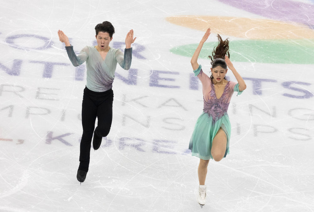 2月22日,中國組合肖紫兮(右)/何凌昊在自由舞比賽中。新華社發(fā)(全休相攝)