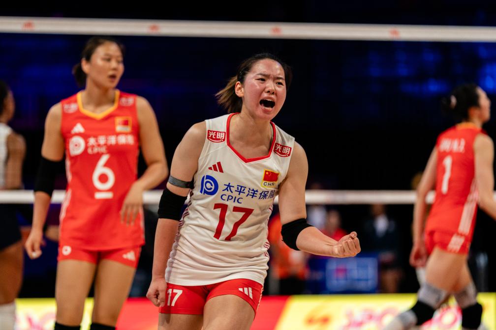 決定勝負(fù)的第五局,中國隊(duì)一度以10:7領(lǐng)先,但多米尼加隊(duì)追至13平。面對令人屏息的局末關(guān)鍵分,中國隊(duì)干脆利落連得兩分,以15:13笑到最后。