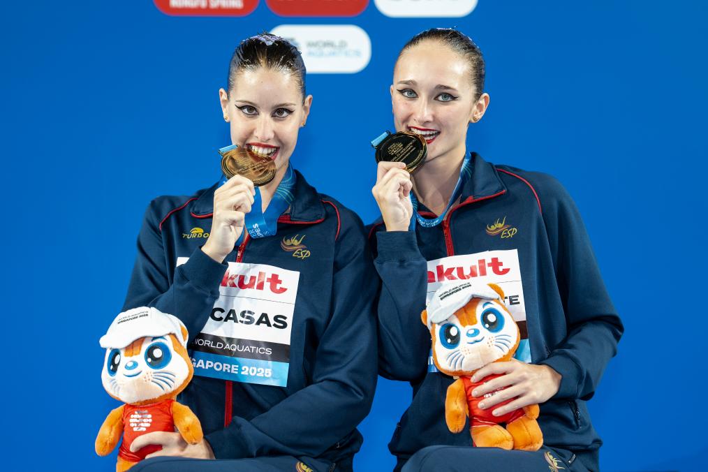 新華社新加坡7月24日電(記者岳晨星、王子江)在24日進(jìn)行的新加坡游泳世錦賽花樣游泳女子雙人自由自選比賽中,西班牙組合瓦萊特/卡薩斯奪得金牌,意大利選手皮科利/魯杰羅、來(lái)自俄羅斯的中立運(yùn)動(dòng)員組合多羅什科/蓋達(dá)伊分獲第二、三名。中國(guó)隊(duì)選手林彥含/林彥君排名第四。