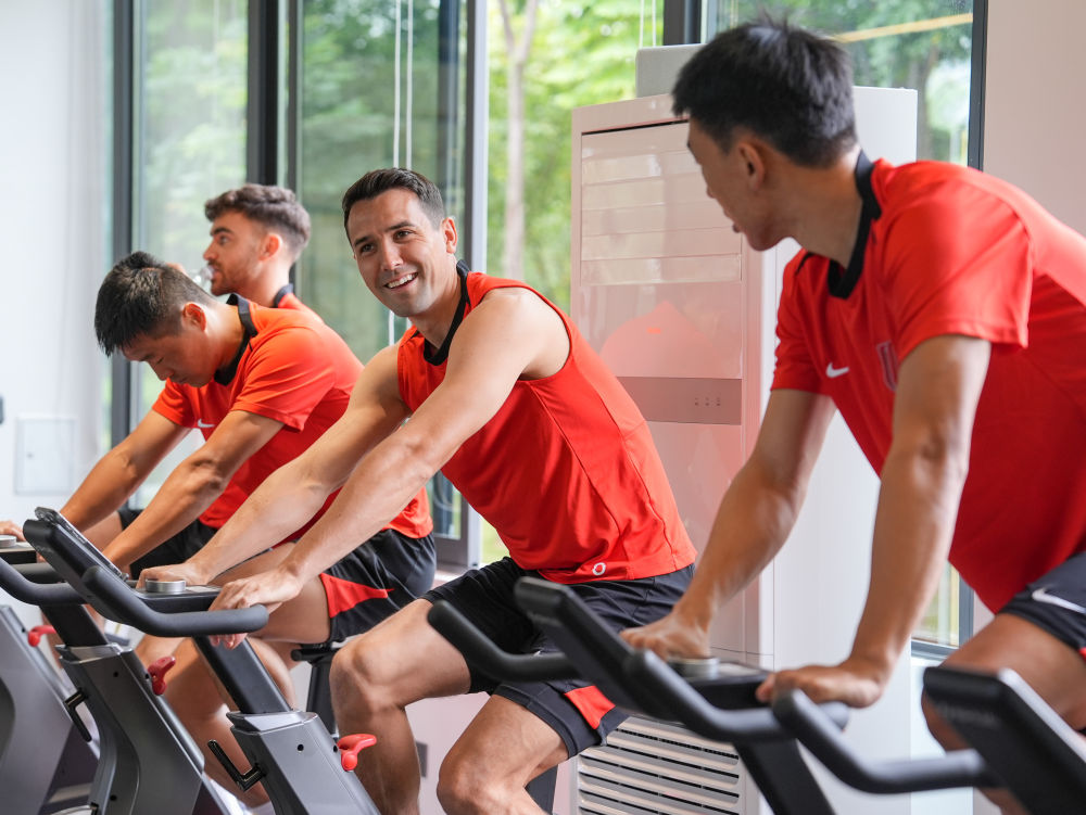 9月8日,成都蓉城隊(duì)球員在訓(xùn)練中。新華社記者 王曦 攝