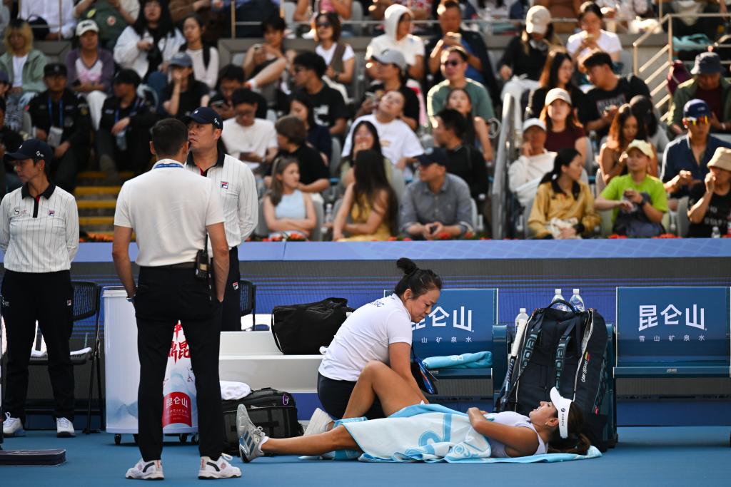 進(jìn)入第三盤,諾斯科娃先聲奪人,很快建立3:0的領(lǐng)先優(yōu)勢。局間休息時(shí),醫(yī)務(wù)人員上場與鄭欽文交流。短暫溝通后,鄭欽文選擇退賽,比賽就此結(jié)束。