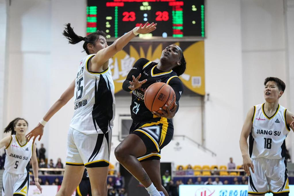 東莞隊(duì)此役在籃板球上以52:27占據(jù)較大優(yōu)勢,卡多佐貢獻(xiàn)23分、17個(gè)籃板的“兩雙”數(shù)據(jù),楊舒予得到15分。國手羅欣棫為江蘇隊(duì)拿下全隊(duì)最高的21分。