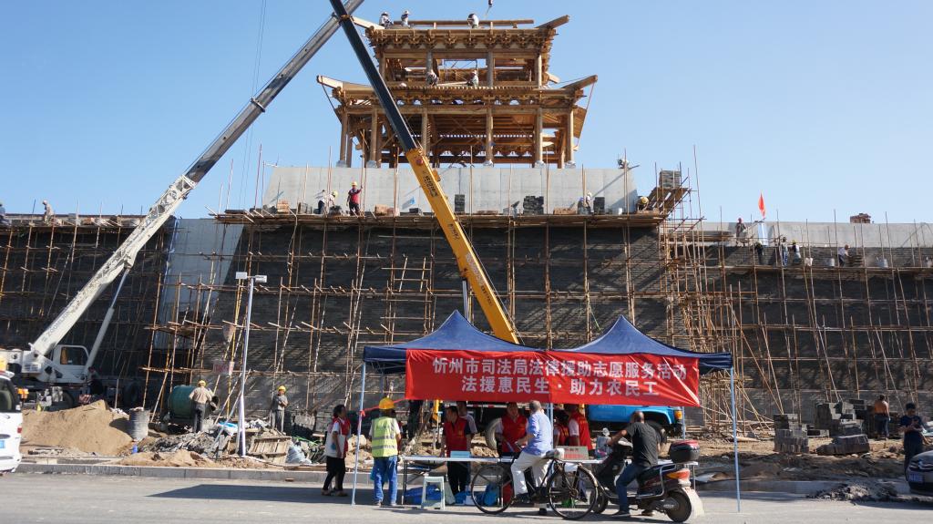 為深入貫徹落實(shí)習(xí)近平新時(shí)代中國特色社會(huì)主義思想和黨的十九大及十九屆二中、三中、四中全會(huì)精神,貫徹落實(shí)《保障農(nóng)民工工資支付條例》和國家、山西省關(guān)于農(nóng)民工服務(wù)工作的部署,切實(shí)加強(qiáng)我市農(nóng)民工安全生產(chǎn)意識(shí),提高農(nóng)民工的維權(quán)意識(shí)和維權(quán)能力,8月13日下午,忻州市司法局組織市法律援助中心、公證處、律師事務(wù)所、司法鑒定中心組成法律援助志愿服務(wù)隊(duì),走進(jìn)忻州古城建筑工地現(xiàn)場(chǎng),開展了“法援惠民生·助力農(nóng)民工”法律援助志愿服務(wù)活動(dòng)。