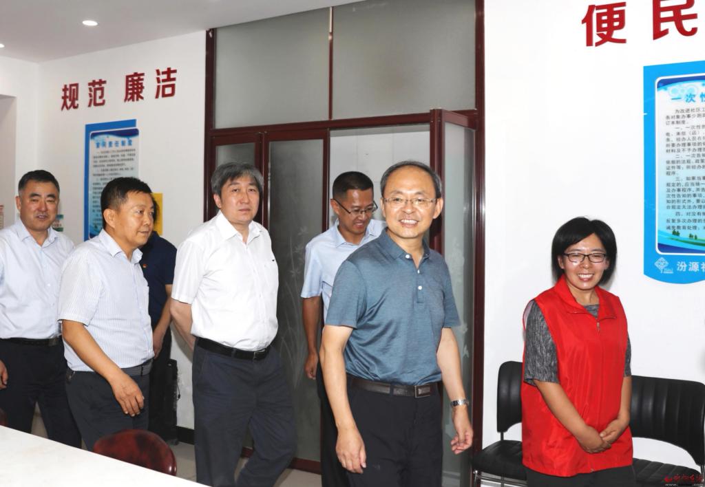 在汾源社區(qū)。范濤攝 汾源社區(qū)各項(xiàng)工作如火如荼開(kāi)展。鄭連生一行現(xiàn)場(chǎng)檢查了志愿者服務(wù)站、綜合文化活動(dòng)中心等區(qū)域,聽(tīng)取了相關(guān)工作人員的工作匯報(bào),就進(jìn)一步查找整改問(wèn)題、鞏固提升工作提出要求。