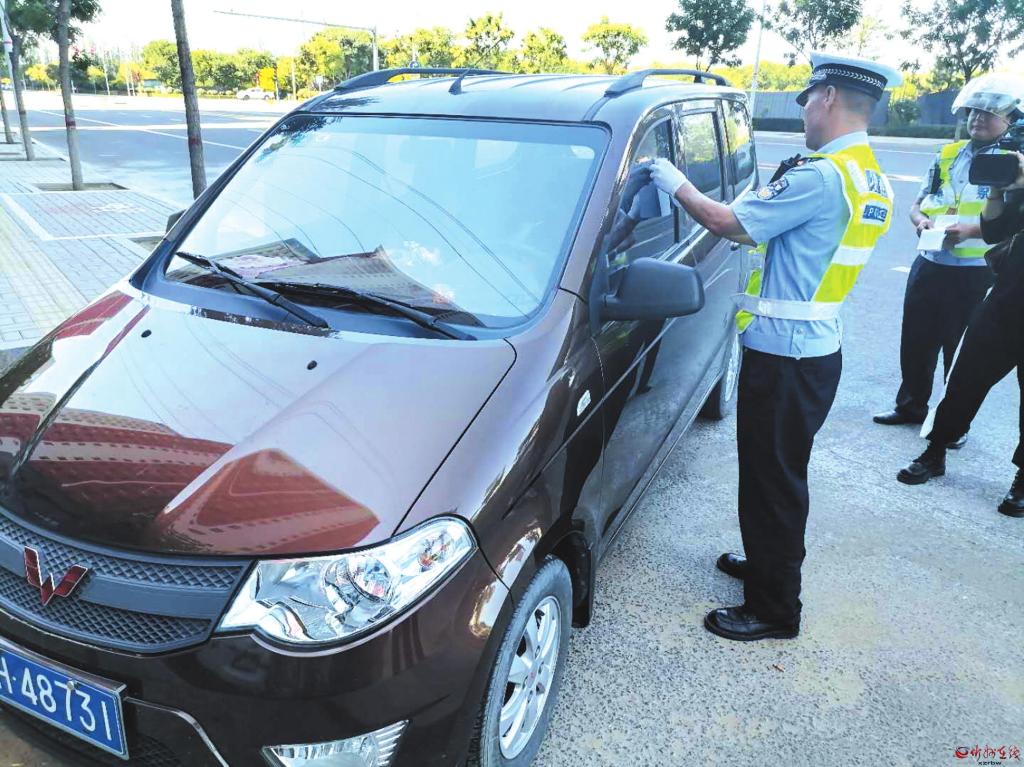 火車(chē)站前斑馬線一市民違規(guī)行駛被處罰。 范 濤 攝
