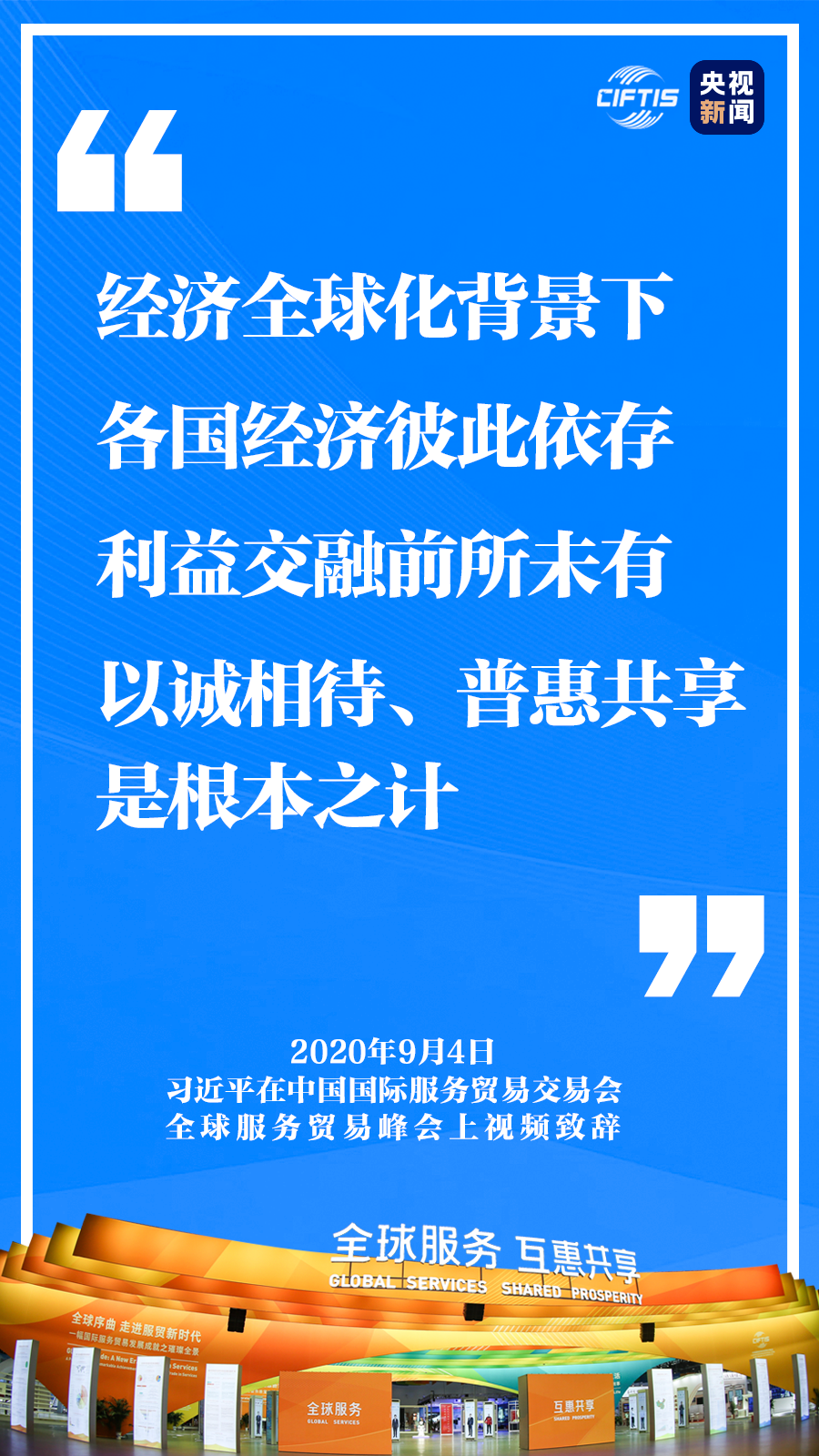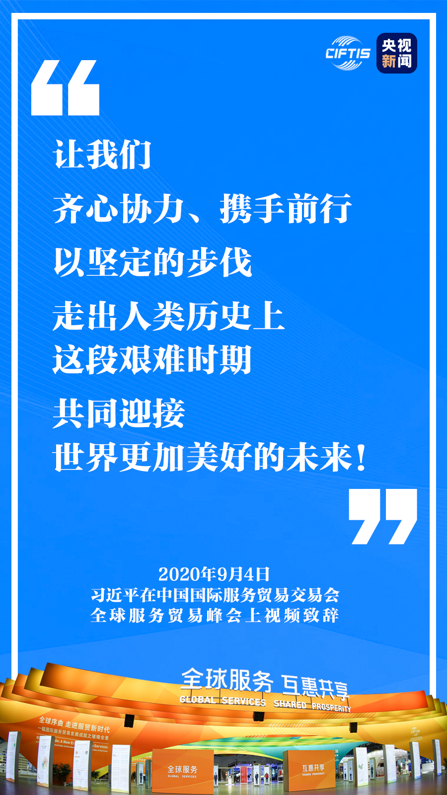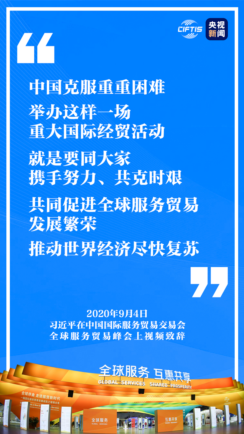 中國克服重重困難,舉辦這樣一場重大國際經貿活動,就是要同大家攜手努力、共克時艱,共同促進全球服務貿易發(fā)展繁榮,推動世界經濟盡快復蘇。
