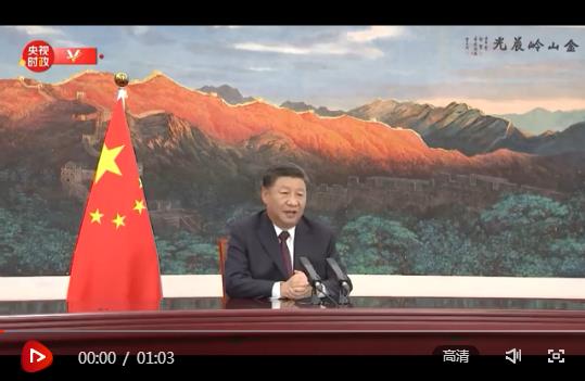 9月4日,國家主席習近平在2020年中國國際服務貿易交易會全球服務貿易峰會上視頻致辭。