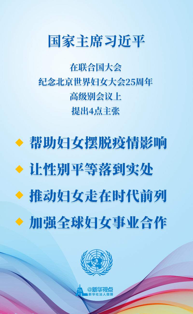 10月1日,聯(lián)合國大會紀念北京世界婦女大會25周年高級別會議舉行,習近平主席出席會議并發(fā)表講話。