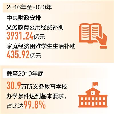目前,全國1.54億城鄉(xiāng)義務(wù)教育階段學(xué)生都享受著一份“大禮包”:免除學(xué)雜費(fèi)、免費(fèi)提供教科書,家庭經(jīng)濟(jì)困難學(xué)生還能補(bǔ)助生活費(fèi)。2016年至2020年,中央財政共安排義務(wù)教育公用經(jīng)費(fèi)補(bǔ)助3931.24億元,家庭經(jīng)濟(jì)困難學(xué)生生活補(bǔ)助435.92億元,免費(fèi)教科書補(bǔ)助712.13億元。