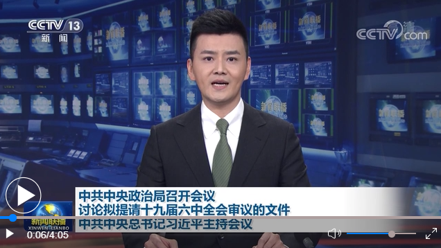 會(huì)議決定,中國(guó)共產(chǎn)黨第十九屆中央委員會(huì)第六次全體會(huì)議于11月8日至11日在北京召開。