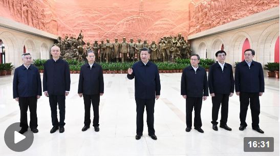 △邊區(qū)人民的巨大貢獻(xiàn)。(總臺(tái)央視記者許永松拍攝) 03 “延安精神要代代傳承下去” 踏上新征程,作出新宣示。新一屆中共中央政治局常委的這次集體出行,令人矚目。 十年前,2012年11月29日,黨的十八大閉幕剛兩周,習(xí)近平總書記帶領(lǐng)全體中央政治局常委赴國(guó)家博物館參觀《復(fù)興之路》展覽,總書記提出并闡述“中國(guó)夢(mèng)”。 五年前,2017年10月31日,黨的十九大閉幕僅一周,習(xí)近平總書記帶領(lǐng)十九屆中共中央政治局常委專程從北京前往上海和浙江嘉興,瞻仰中共一大會(huì)址。