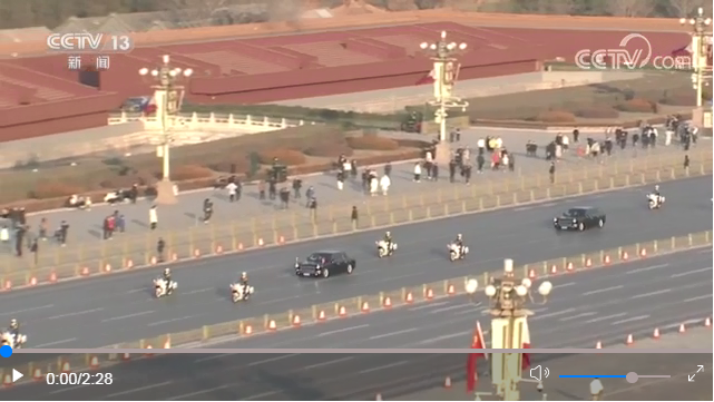 天安門廣場鳴放21響禮炮,禮兵列隊致敬,迎賓小號手鳴禮號。兩國元首登上檢閱臺,軍樂團奏中菲兩國國歌。馬科斯在習(xí)近平陪同下檢閱了中國人民解放軍儀仗隊,并觀看分列式。