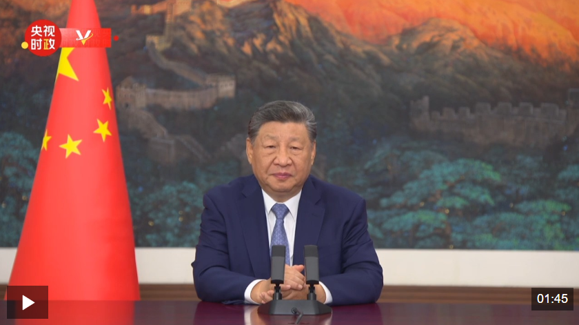 9月24日,國家主席習近平在聯(lián)合國氣候變化峰會發(fā)表視頻致辭。