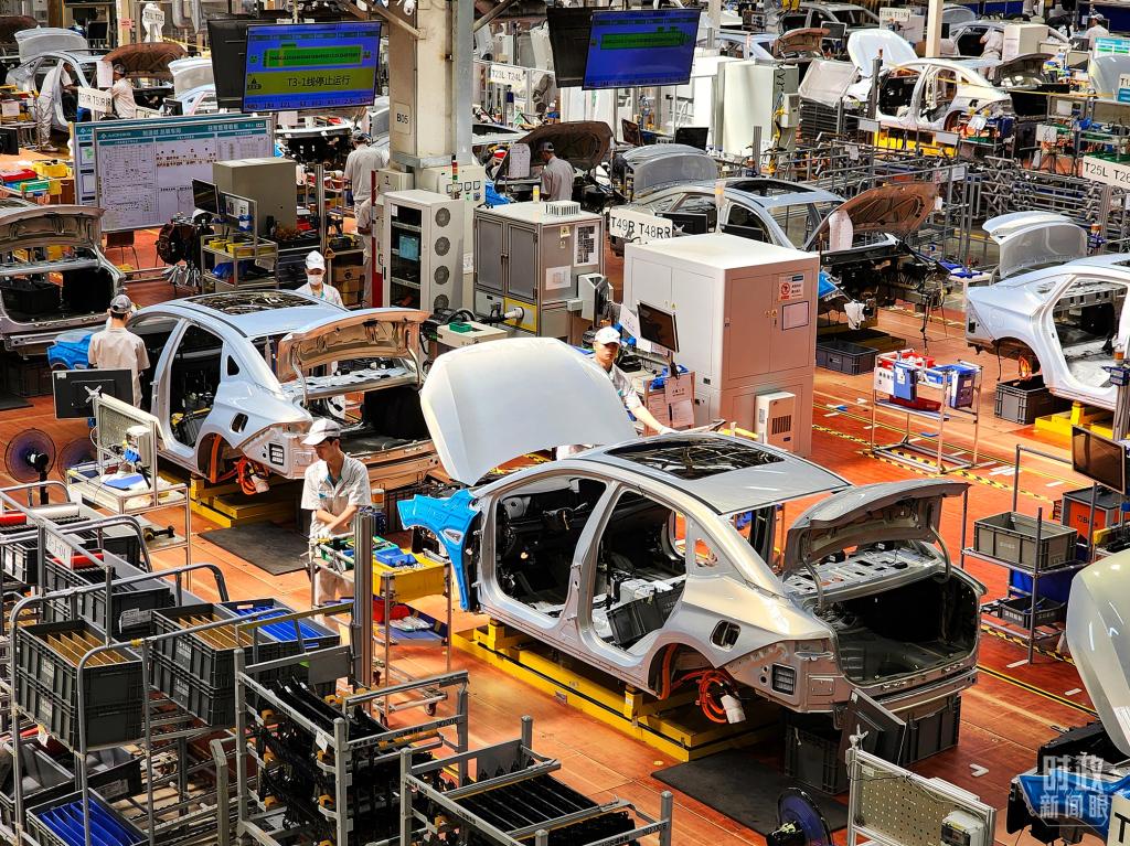 △國內(nèi)一家車企制造車間的新能源汽車生產(chǎn)線。(圖/視覺中國)