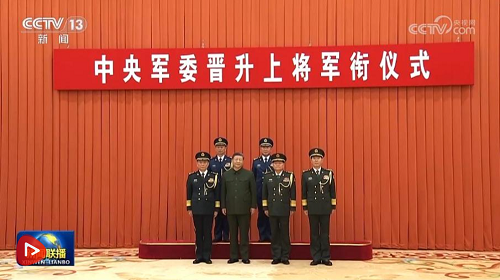 中央軍委晉升上將軍銜儀式22日在北京八一大樓舉行。中央軍委主席習近平出席晉銜儀式。