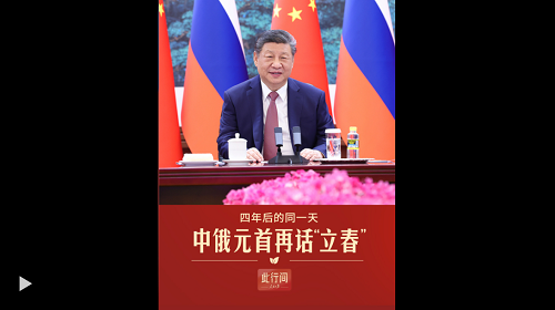 四年前的2月4日,習(xí)近平主席在會(huì)見普京總統(tǒng)時(shí)曾提到“立春”。四年后的同一天,中俄元首再話“立春”。作為中國傳統(tǒng)二十四節(jié)氣之首,立春象征著春回大地,代表著新的開始。再啟新程,中俄共同擘畫兩國關(guān)系新的藍(lán)圖。