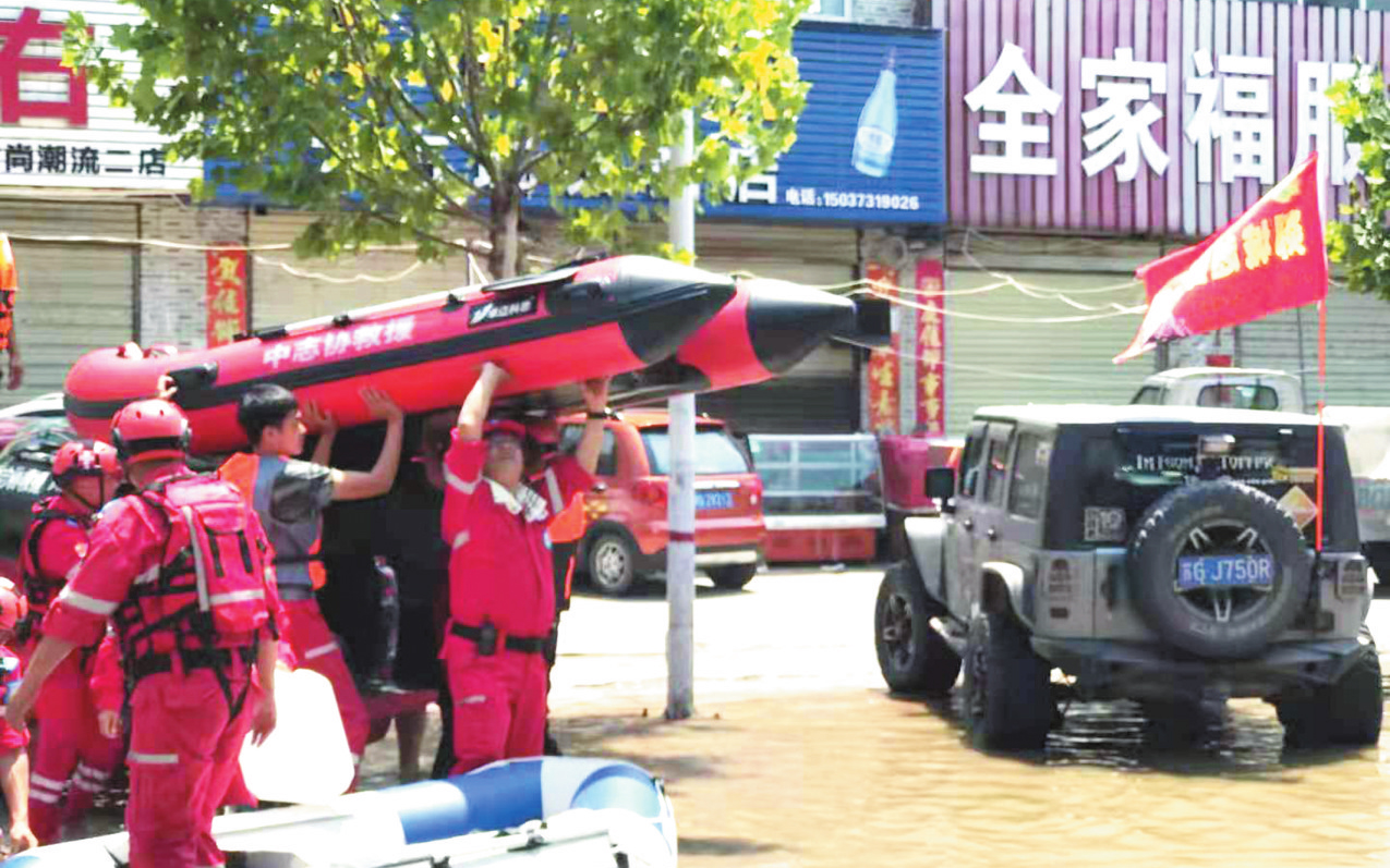 為完成好這次救援任務(wù),該服務(wù)隊(duì)準(zhǔn)備了救生衣、救生圈、發(fā)電機(jī)、迷霧機(jī)、救援繩、急救箱、防疫物品等充足的保障物資。24日一早,服務(wù)隊(duì)抵達(dá)鄭州,之后他們?cè)谥鞴懿块T統(tǒng)一指揮下展開積極救援。 (王國棟 張蓉 攝影報(bào)道)