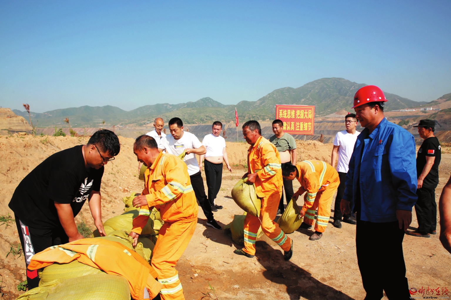 常態(tài)化組織相關(guān)人員對(duì)露天煤礦采坑、排土場及上游泄洪通道進(jìn)行全方位巡察,對(duì)可能發(fā)生阻塞河道的地段進(jìn)行加固引流,及時(shí)進(jìn)行了疏通。沿露天采坑周邊構(gòu)筑攔水壩,對(duì)河流積水進(jìn)行引流,確保安全度汛。圖為應(yīng)急演練現(xiàn)場。 (高文進(jìn))