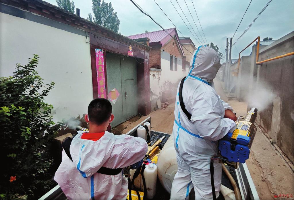 河北涿州發(fā)生暴雨洪澇災害后,我市天龍救援隊響應號召,攜帶專業(yè)救援設(shè)備迅速奔赴當?shù)鼐仍?,大家沖鋒在前,積極投入抽水、排污、清淤、搬運物資、消殺等工作中。圖為8月7日在該市刁窩鎮(zhèn),民盟盟員、救援隊隊員王宇龍(右一)和隊友在進行街巷消殺。(焦未軍攝)