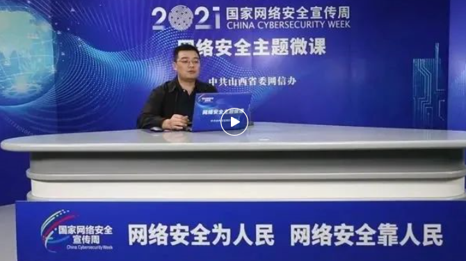 為深入宣傳貫徹習(xí)近平總書記關(guān)于網(wǎng)絡(luò)強(qiáng)國(guó)的重要思想,深入宣傳貫徹習(xí)近平總書記對(duì)網(wǎng)絡(luò)安全工作“四個(gè)堅(jiān)持”的重要指示,深入宣傳《中華人民共和國(guó)網(wǎng)絡(luò)安全法》和相關(guān)法律法規(guī),由山西省委網(wǎng)信辦主辦的2021國(guó)家網(wǎng)絡(luò)安全宣傳周山西“網(wǎng)絡(luò)安全主題微課”活動(dòng)于10月11日開始全網(wǎng)推送。