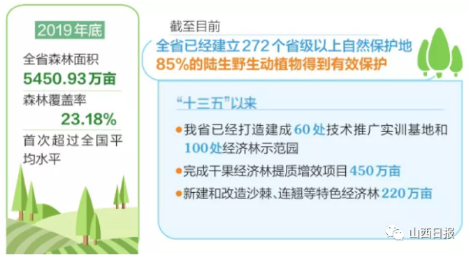從2006年開始,我省每年都要召開全省國土綠化現(xiàn)場會,每一次現(xiàn)場會都是一整套精品工程。從晉城市的美麗鄉(xiāng)村建設模式、運城市的生態(tài)經濟林業(yè)建設模式、臨汾市的山垣溝川綜合治理模式、長治市的山水林田湖草沙系統(tǒng)治理模式,到陽泉市的礦區(qū)生態(tài)修復模式、晉中市的生態(tài)經濟統(tǒng)籌推進、呂梁市的大規(guī)模生態(tài)修復模式、太原市的環(huán)城生態(tài)圈建設模式,再到忻州市的黃河流域劣質地類造林治理模式、朔州市的沙區(qū)林草融合模式、大同市的沙區(qū)生態(tài)公園建設模式,逐步形成了山西科技興林集合地。在精品工程的推動下,《2017年全國生態(tài)氣象公報》顯示,2000-2017年山西植被改善最快。