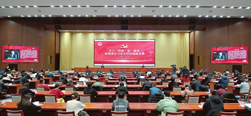本報(bào)訊2月9日,省直工委舉辦中國(guó)共產(chǎn)黨人精神譜系系列宣講第十一場(chǎng)——“兩彈一星”精神專題報(bào)告會(huì)。省直各單位機(jī)關(guān)黨委書記、省委機(jī)關(guān)各部委、省科技廳、省科協(xié)、中國(guó)科學(xué)院山西煤化所部分黨員干部現(xiàn)場(chǎng)聆聽報(bào)告。
