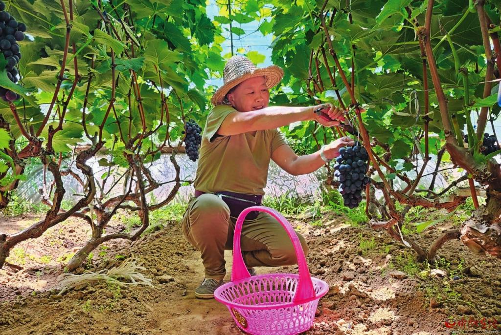 葡萄每年7月份開(kāi)園上市,上市周期為一個(gè)多月。為確保在葡萄口感最佳時(shí)期讓各地游客前來(lái)品嘗、采摘,彭麗萍每天都會(huì)及時(shí)翻土驅(qū)蟲、摘除病葉,并在線上線下開(kāi)展多渠道推廣。