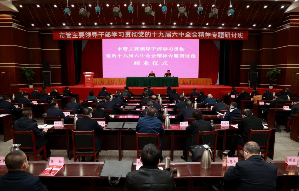 | 市管主要領(lǐng)導(dǎo)干部學(xué)習(xí)貫徹黨的十九屆六中全會精神專題研討班結(jié)業(yè) |