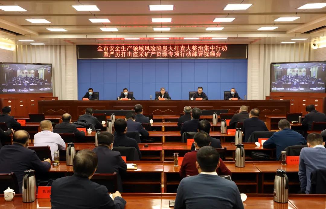 12月21日,全市安全生產(chǎn)領(lǐng)域風(fēng)險隱患大排查大整治集中行動暨嚴厲打擊盜采礦產(chǎn)資源專項行動部署會召開,貫徹全省會議精神,安排我市當(dāng)前工作。市委書記朱曉東主持會議并作重要講話,強調(diào)歲末年關(guān)各項工作千頭萬緒,安全生產(chǎn)的嚴峻性、艱巨性、緊迫性尤為突出,各級各部門務(wù)必高度重視,從嚴警醒起來,堅決杜絕麻痹僥幸心理、松懈情緒,以永遠在路上的心態(tài),以一切從零開始的作為,堅持兩手用力,推進兩個行動,全面落實好省委省政府和市委市政府部署要求,堅決守牢安全生產(chǎn)底線。市委副書記、市政府黨組書記李建國,市委常委、常務(wù)副市長趙新年,副市長、市公安局長袁小波,市政府秘書長張艮生出席會議。會議以視頻方式召開,各縣(市、區(qū))設(shè)分會場,兼任縣(市、區(qū))職務(wù)的市領(lǐng)導(dǎo)在分會場出席會議。市政府安委會成員單位和相關(guān)重點企業(yè)負責(zé)人在市主會場參加會議。
