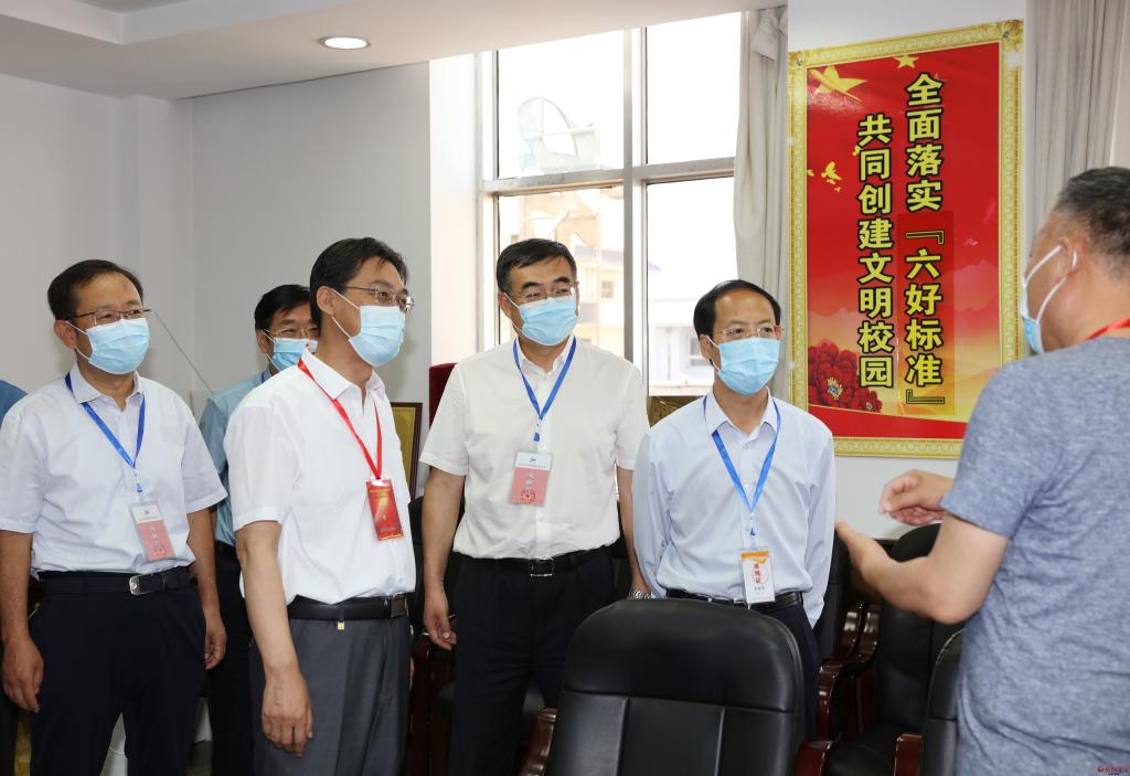 在忻州市高考指揮中心,李青山一行通過(guò)視頻指揮調(diào)度平臺(tái)實(shí)時(shí)察看各縣(市、區(qū))各考點(diǎn)考場(chǎng)試卷啟封、分發(fā)、開(kāi)考情況,察看各考點(diǎn)周邊環(huán)境秩序,到保密室視頻察看各地試卷安全保密措施。隨后深入忻州十中和十一中考點(diǎn),仔細(xì)察看考生進(jìn)入考點(diǎn)時(shí)的測(cè)溫通道和安檢通道,實(shí)地走訪醫(yī)務(wù)室、考務(wù)室、保密室,通過(guò)視頻監(jiān)控察看各考場(chǎng)情況。李青山指出,高考是實(shí)現(xiàn)教育公平、社會(huì)公平的重要制度,承載著為國(guó)選人育人的重大使命。各級(jí)各相關(guān)部門(mén)要充分認(rèn)識(shí)做好疫情常態(tài)化防控形勢(shì)下高考工作的特殊性、重要性、復(fù)雜性,周密部署,扎實(shí)抓好高考期間各項(xiàng)工作,全力保障高考順利進(jìn)行。要按照職責(zé)分工和任務(wù)安排,抓好試題保密、考場(chǎng)引導(dǎo)、考風(fēng)考紀(jì)等關(guān)鍵環(huán)節(jié),切實(shí)把高考工作組織好、落實(shí)好,要加強(qiáng)考點(diǎn)周?chē)h(huán)境整治等高考各項(xiàng)服務(wù)保障,為考生營(yíng)造安靜、有序、寬松的考試環(huán)境。各相關(guān)部門(mén)要按照高考有關(guān)規(guī)定,密切配合、通力合作,確保各項(xiàng)工作做到細(xì)而又細(xì)、實(shí)而又實(shí),把高考服務(wù)工作做得更細(xì)更扎實(shí),為廣大考生穩(wěn)定發(fā)揮提供良好考試環(huán)境。
