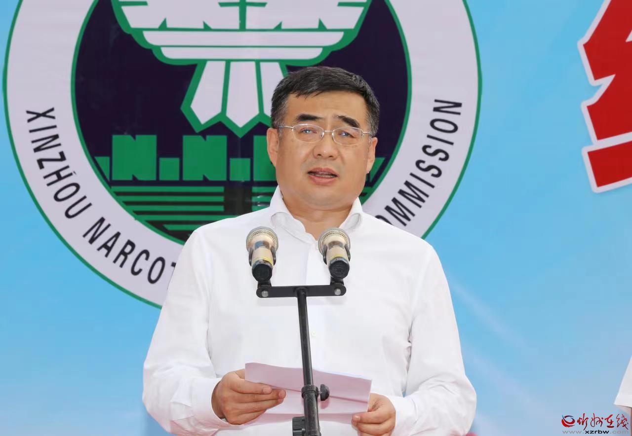 李建國(guó)代表市委、市政府向長(zhǎng)期奮戰(zhàn)在禁毒一線的工作者致以崇高敬意,向關(guān)心支持我市禁毒工作的社會(huì)各界表示衷心感謝。他說(shuō),近年來(lái),市委、市政府認(rèn)真貫徹習(xí)近平總書(shū)記關(guān)于禁毒工作的重要指示精神,全面落實(shí)黨中央、國(guó)務(wù)院、省委、省政府禁毒工作決策部署,堅(jiān)持把禁毒工作作為平安創(chuàng)建、文明創(chuàng)建的重要內(nèi)容,強(qiáng)化綜合治理、打擊違法犯罪,全市禁毒形勢(shì)持續(xù)向好,為維護(hù)良好社會(huì)秩序提供了有力保障。但同時(shí)要看到,禁毒工作不能有絲毫懈怠,各級(jí)黨委政府要把禁毒工作列入重要議事日程,做到常抓常議、有力有效;各級(jí)公安機(jī)關(guān)要切實(shí)發(fā)揮禁毒主力軍作用,加大打擊力度,加強(qiáng)源頭治理,深入開(kāi)展“清源斷流”行動(dòng)和農(nóng)村毒品問(wèn)題治理,堅(jiān)決杜絕因毒致貧、因毒返貧以及涉毒人員肇事肇禍行為發(fā)生;要充分發(fā)揮禁毒教育基地職能作用,有序組織開(kāi)展中小學(xué)生禁毒學(xué)習(xí)教育,不斷增強(qiáng)青少年識(shí)毒、拒毒、防毒的意識(shí)和能力;要深入開(kāi)展“禁毒宣傳進(jìn)萬(wàn)家”活動(dòng),為創(chuàng)建無(wú)毒平安忻州貢獻(xiàn)力量,為忻州全方位推動(dòng)高質(zhì)量發(fā)展創(chuàng)造更加安全穩(wěn)定的社會(huì)環(huán)境。