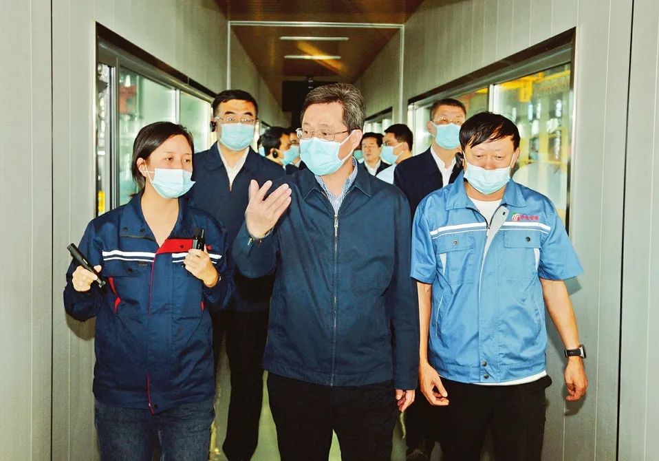 ▲9月6日,省委副書記、省長藍(lán)佛安來到位于繁峙縣的山西華茂智能新材料有限公司,調(diào)研年產(chǎn)30萬噸球墨鑄管和13萬噸鑄件項(xiàng)目,認(rèn)真察看生產(chǎn)設(shè)施及流程,了解產(chǎn)品類型、應(yīng)用領(lǐng)域等情況。山西日報(bào)記者 李兆民 攝