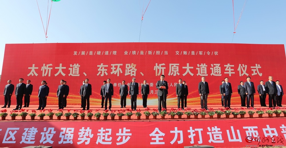 9月30日,我市舉行太忻大道、東環(huán)路、忻原大道通車儀式,市委書記朱曉東出席儀式并宣布太忻大道、東環(huán)路、忻原大道通車。市委副書記、市長李建國主持儀式。市委副書記、政法委書記郭奔勝,市人大常委會主任王珍,市政協(xié)主席范建民,山西建投集團(tuán)公司副董事長、總經(jīng)理徐忠和,市領(lǐng)導(dǎo)劉卓良、趙新年、張文偉、溫建軍、張敏、張宇光、史紅波、賈玲香、崔崢嶺、李碩、王建峰、張文斌,市政府秘書長張艮生,中鐵十七局集團(tuán)公司和中建三局集團(tuán)公司相關(guān)負(fù)責(zé)人出席。副市長耿鵬鵬介紹項(xiàng)目建設(shè)情況。