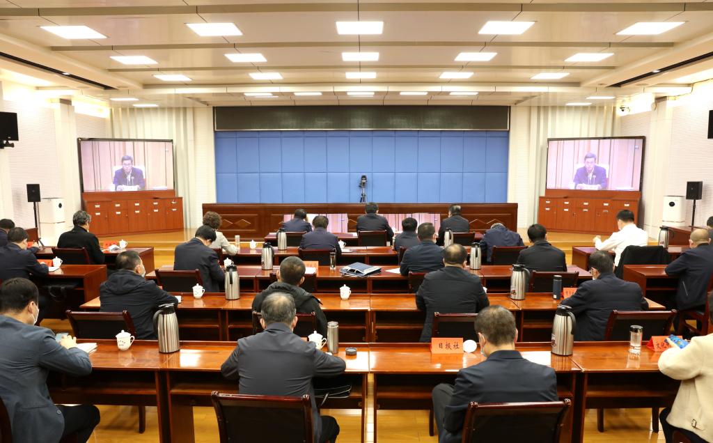 會議會場。范濤 攝 11月8日,全省文物工作會議以視頻形式召開,深入學(xué)習(xí)貫徹黨的二十大精神,貫徹落實(shí)習(xí)近平總書記關(guān)于文物工作的重要論述和考察調(diào)研山西重要指示精神,按照全國文物工作會議要求,就新時(shí)代全省文物事業(yè)高質(zhì)量發(fā)展進(jìn)行部署。市委副書記、市長李建國,市政府秘書長張艮生和市直相關(guān)部門負(fù)責(zé)人在忻州分會場參加會議。