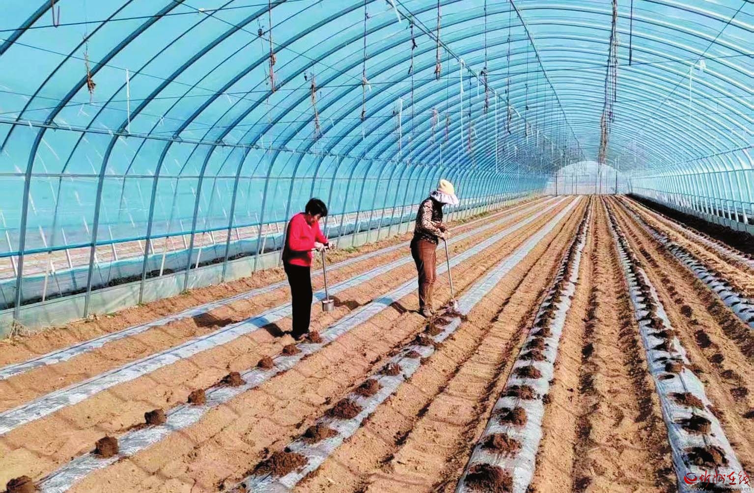 陽春三月,春風(fēng)拂過雙乳山,西大王村的豆角產(chǎn)業(yè)園迎來豆角種植好時機(jī)。大棚里,六七個工人有序作業(yè),有的在點(diǎn)坑穴,有的在撒種、填土。一個大棚種好后,打開閥門,水流順著地上的滴管涌到坑穴,為剛?cè)鱿碌姆N子提供水分。據(jù)了解,西大王村采用“黨支部+集體經(jīng)濟(jì)合作社+農(nóng)戶”的發(fā)展模式,既為集體增收,又讓村民受益。今年,豆角種植園區(qū)一共有13個大棚,占地約40畝。為了搶抓農(nóng)時,提前上市,賣個好價格,此次播種雇了許多村民幫忙,播種大約需要半個月時間才能完成。