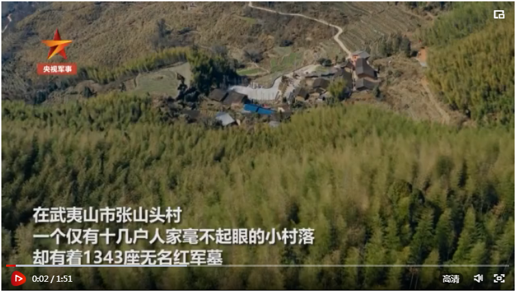 福建張山頭村竹林中,有1343座無名紅軍墓,每座墓僅一根紅飄帶、一個(gè)編號做標(biāo)記。革命戰(zhàn)爭年代,這里曾是閩北蘇區(qū)紅色首府所在地的中心地帶,不少傷病員在村里的紅軍中醫(yī)院療養(yǎng)。敵人“圍剿”,藥品不足,斷米斷菜,很多將士犧牲了,村民就把他們葬在醫(yī)院后方,3塊青磚做墓門。為保護(hù)家人,這些紅軍沒有留下名字……(胡渝 任超 張馨尹)