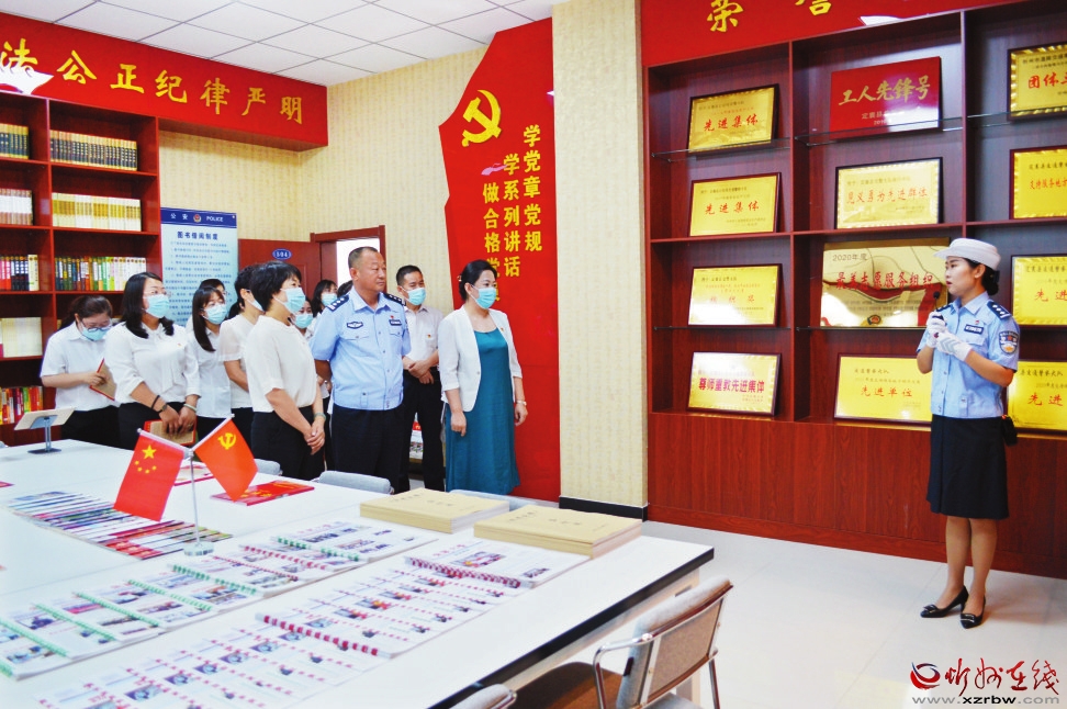 立足崗位,對(duì)標(biāo)先進(jìn)。7月1日,市婦聯(lián)黨組組織全體黨員干部前往“山西省巾幗文明崗”“省級(jí)青年文明號(hào)”等榮譽(yù)稱(chēng)號(hào)獲得單位——定襄縣公安局交警大隊(duì)觀摩學(xué)習(xí)。 本報(bào)通訊員攝
