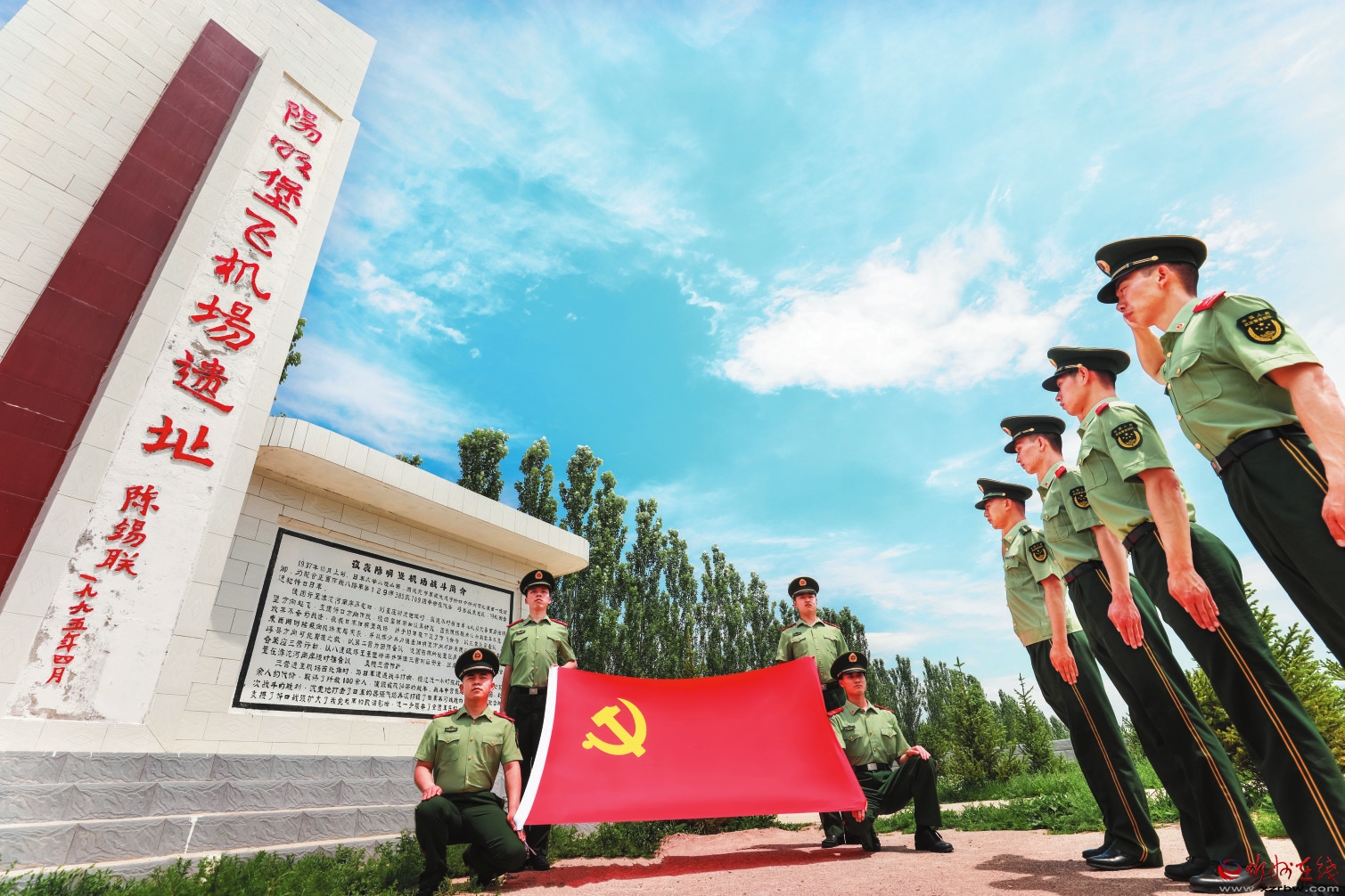 理想如磐,信念如鋼?!捌咭弧鼻跋?,武警山西總隊(duì)忻州支隊(duì)組織黨員在“陽(yáng)明堡飛機(jī)場(chǎng)遺址”重溫入黨誓詞。 楊旭東攝