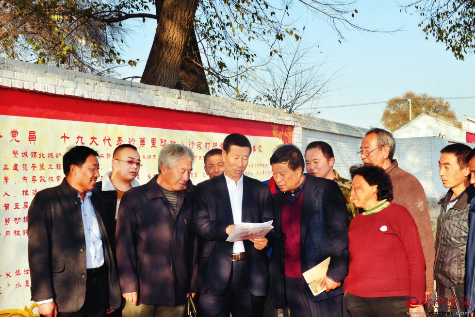 心系百姓,無(wú)私奉獻(xiàn)。多年來(lái),全國(guó)勞動(dòng)模范、黨的十九大代表、全國(guó)脫貧攻堅(jiān)奉獻(xiàn)獎(jiǎng)獲得者沙萬(wàn)里心里始終裝著百姓,彰顯了共產(chǎn)黨人沖鋒在前、無(wú)私奉獻(xiàn)的優(yōu)秀品質(zhì)。圖為他向群眾暢談參加黨的十九大的感受。 喬 偉攝