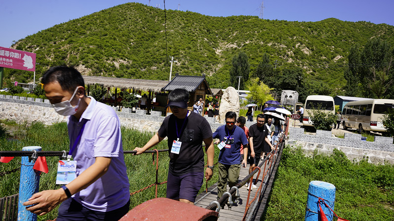黃河新聞網(wǎng)訊(記者周昱麗 劉帥文)一墻一文化,一畫一風(fēng)景。五顏六色的墻體彩繪,在清風(fēng)拂綠中若隱若現(xiàn),宛如散落在太行深處一幅斑駁的畫卷,一個個構(gòu)思奇妙、通俗易懂的圖案寓意深刻,生動形象地展現(xiàn)出當?shù)刈匀伙L(fēng)景和特色民俗風(fēng)情,山水映襯下的山西省陽泉市盂縣貓鋪村美麗鄉(xiāng)村景象已初見端倪。7月23日,“爭先崛起看中部”——第十七屆全國網(wǎng)絡(luò)媒體山西行來到盂縣貓鋪村參觀采訪。 近年來,貓鋪村科學(xué)謀劃、探索創(chuàng)新,緊緊抓住產(chǎn)業(yè)這個“牛鼻子”,因地制宜,依托綠水青山的“美麗資源”,重點打造現(xiàn)代鄉(xiāng)村旅游業(yè),開辟了“農(nóng)業(yè)強村、生態(tài)立村、文旅興村”的發(fā)展思路,從過去的單一種植業(yè)逐步轉(zhuǎn)型為多元融合發(fā)展。 在這里,內(nèi)有被譽為小五臺山的貓溝、布滿原始森林的東溝、古老的桃園、神奇的土泉;外有梁家寨溫泉療養(yǎng)院、龍?zhí)闷俨?、大汖古村、滹沱河、彭真渠等著名景點。它們彼此呼應(yīng)、相連成片,共同構(gòu)成陽泉旅游業(yè)的璀璨明珠。每到水果成熟季節(jié),占地4600平方米的晉農(nóng)之窗博覽園既可以供游人采摘和野外燒烤,也可作為農(nóng)耕文化教育場所,讓人們寄情于山水,在游玩中學(xué)到知識。